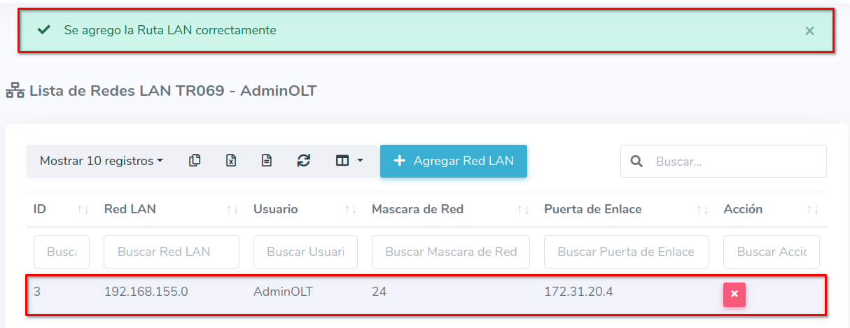 2Agregamos una RED LAN. Al dar click en el botón anterior, se mostrará una lista donde se muestran las redes creadas con anterioridad.