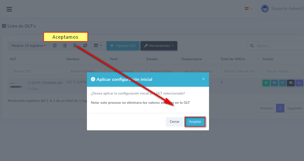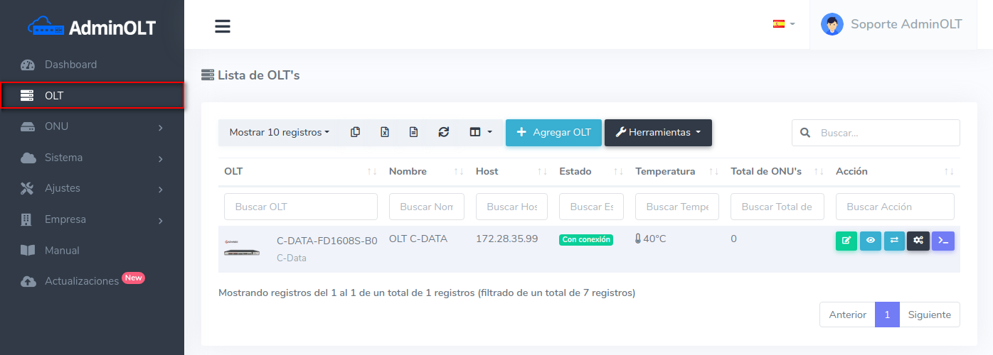 1 Ir a Lista de OLT