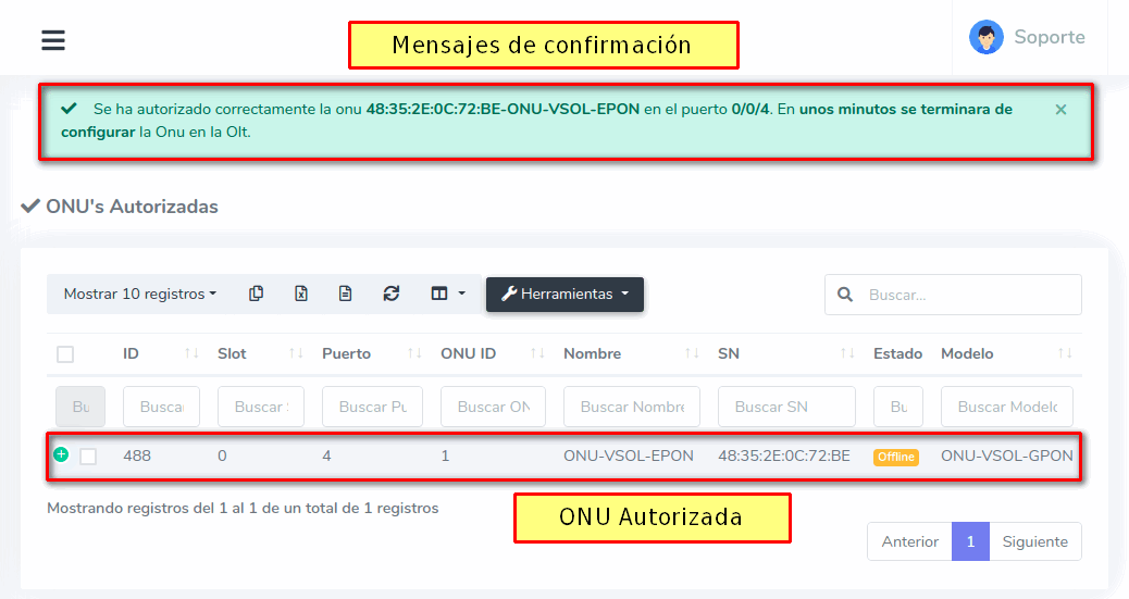 Al conectar un equipo a la OLT, este debe ser autorizado para poder establecer una conexión, a continuación se explican los pasos a seguir para autorizar Onu's en OLT's VSOL GPON desde AdminOLT.