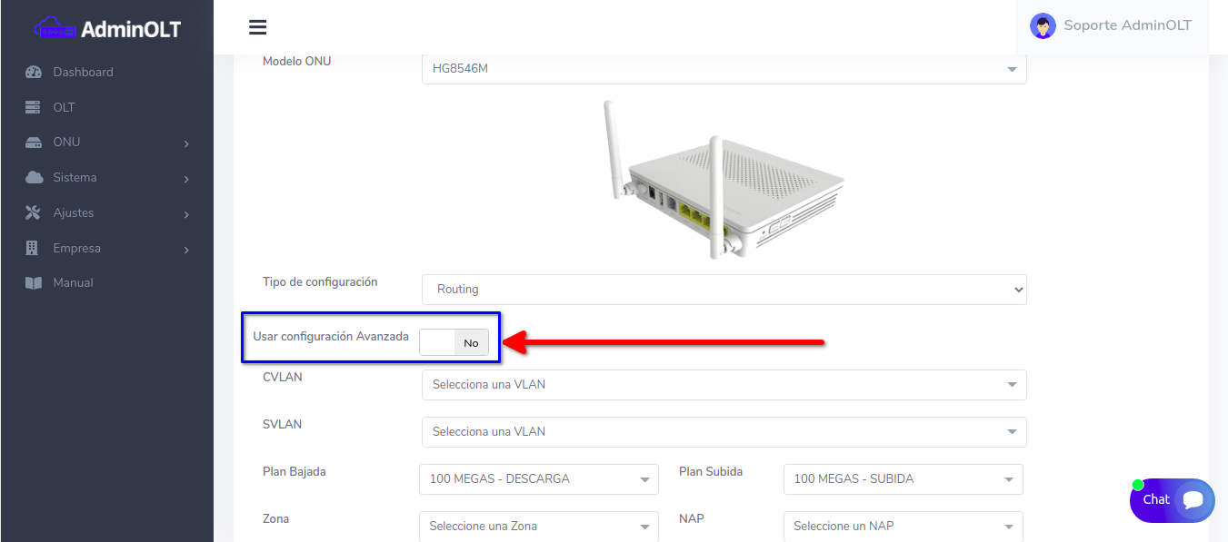 Configuración avanzada ONU Huawei