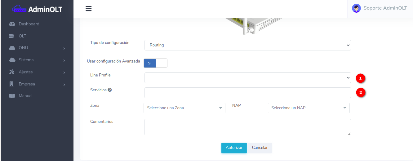 Pasos para autorizar onus utilizando configuración avanzada