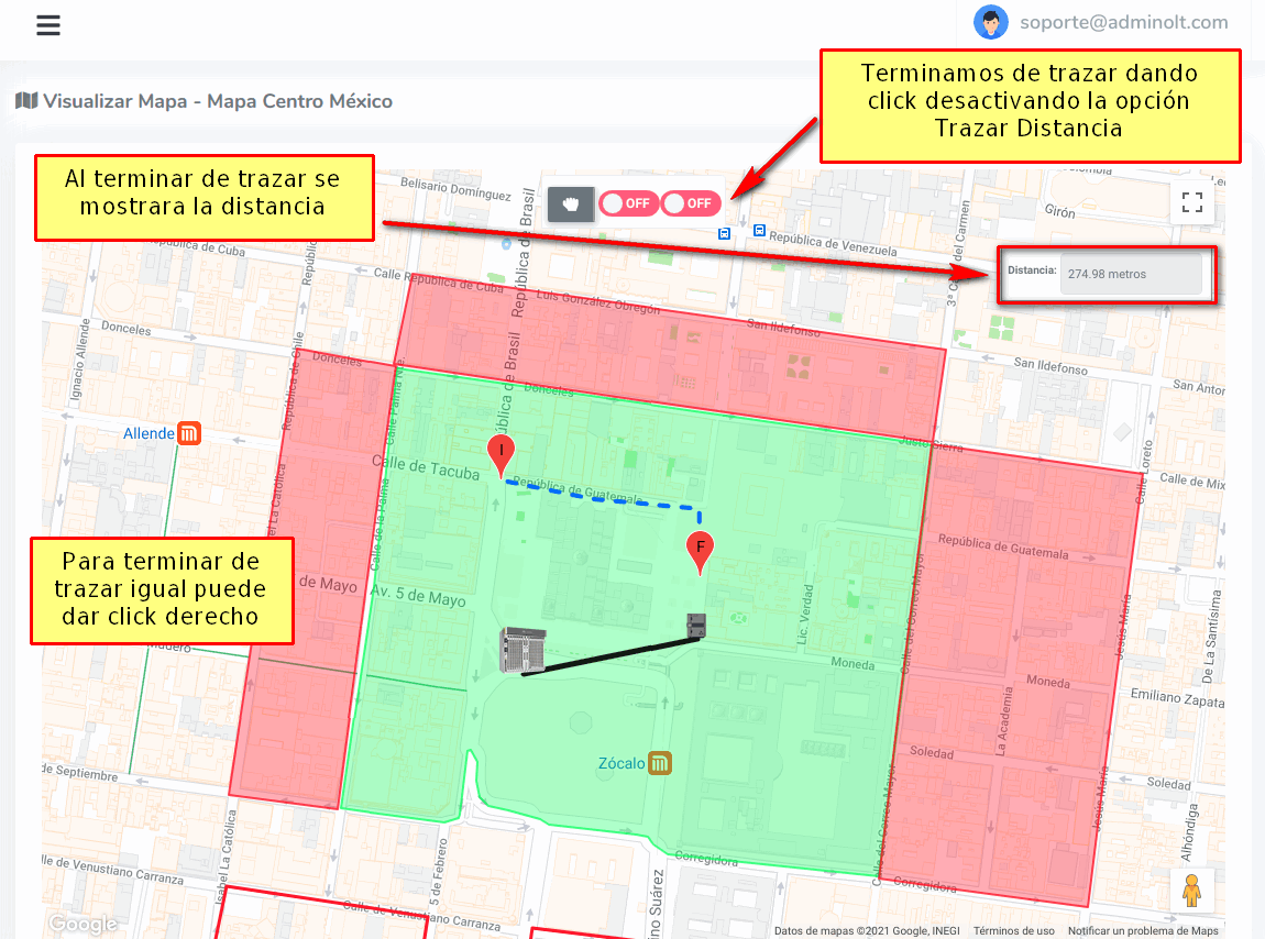 Podemos terminar de trazar dando click derecho o desactivando la opción de Trazar Distancia.