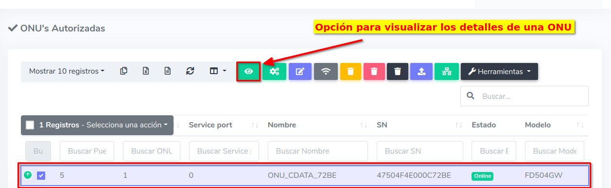 Se resume en la acción de autorizar utilizando el Numero de Serie (SN) de una ONU que no está conectada físicamente a la OLT. De esta forma, al momento de instalación, solo debe conectarse el equipo. Para realizar esta acción siga los siguientes pasos.