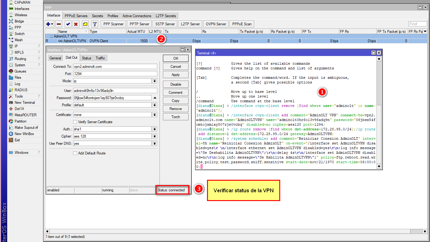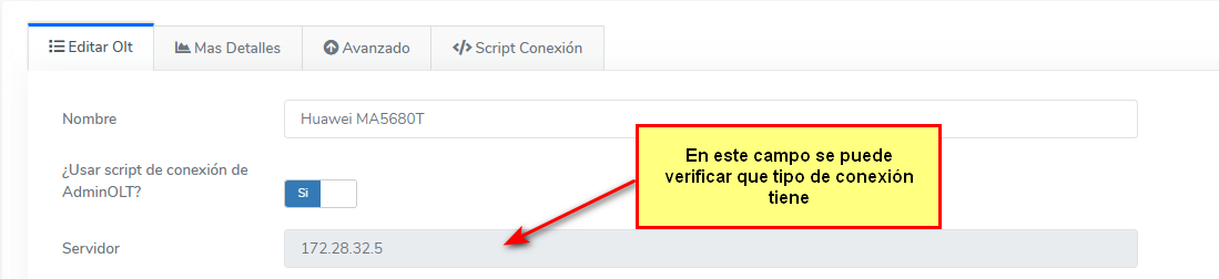 2Si la conexión es por VPN es necesario ir al apartado de script de conexión en la OLT en AdminOLT y copiar y pegar el script de conexión en el mikrotik